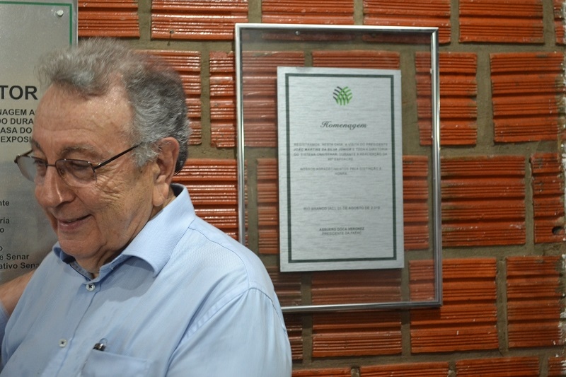 A homenagem veio na forma de uma placa que registrou a presença de Martins no estado, onde foi realizada reunião da Diretoria Executiva da CNA.